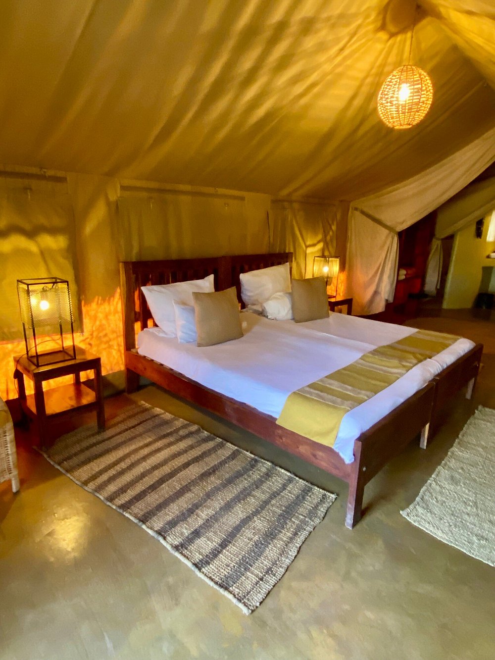 The camp’s design blends traditional African aesthetics with modern comfort. Spacious and well-appointed tents feature en-suite bathrooms, cozy furnishings, and private verandas where guests can relax while soaking in the natural beauty.