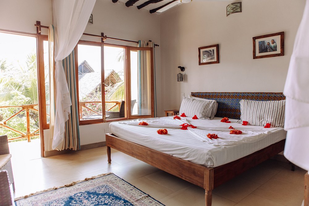 Each room type combines traditional Zanzibari design with modern amenities, including en-suite bathrooms, mosquito nets, and private terraces for unwinding after a day of sun, sand, and sea.
