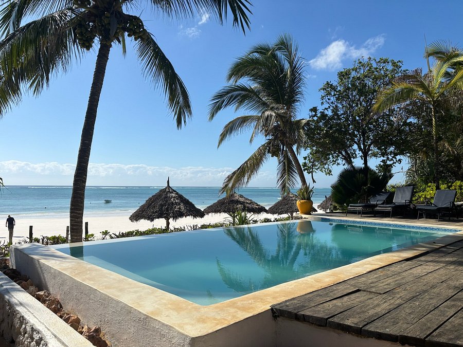 It sits right on a wide white sandy beach facing the Indian Ocean, giving guests direct beach access and great views. sunshineazurehotel.com+2Safari & Beach NEW+2